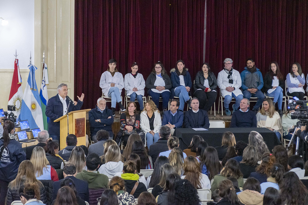 En Río Cuarto Llaryora entregó netbooks, destinadas a estudiantes de institutos de formación docente
